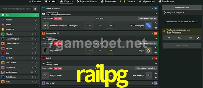 A aposta railpg oferece aos jogadores a experiência mais conveniente de apostas em eSports!